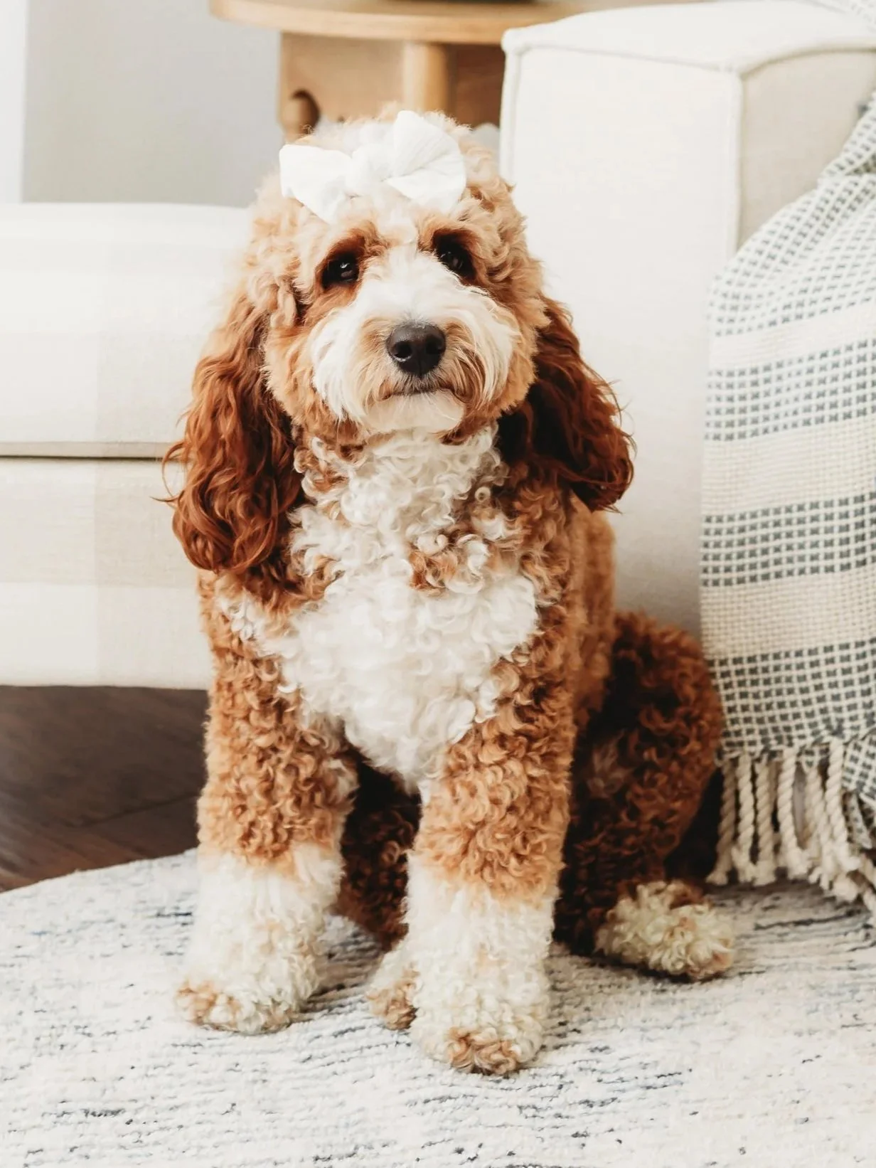 With her soft, curly coat and thoughtful eyes, Fēbē Faith is more than a pet—she is a cherished member of the family, full of heart, warmth, and quiet wisdom