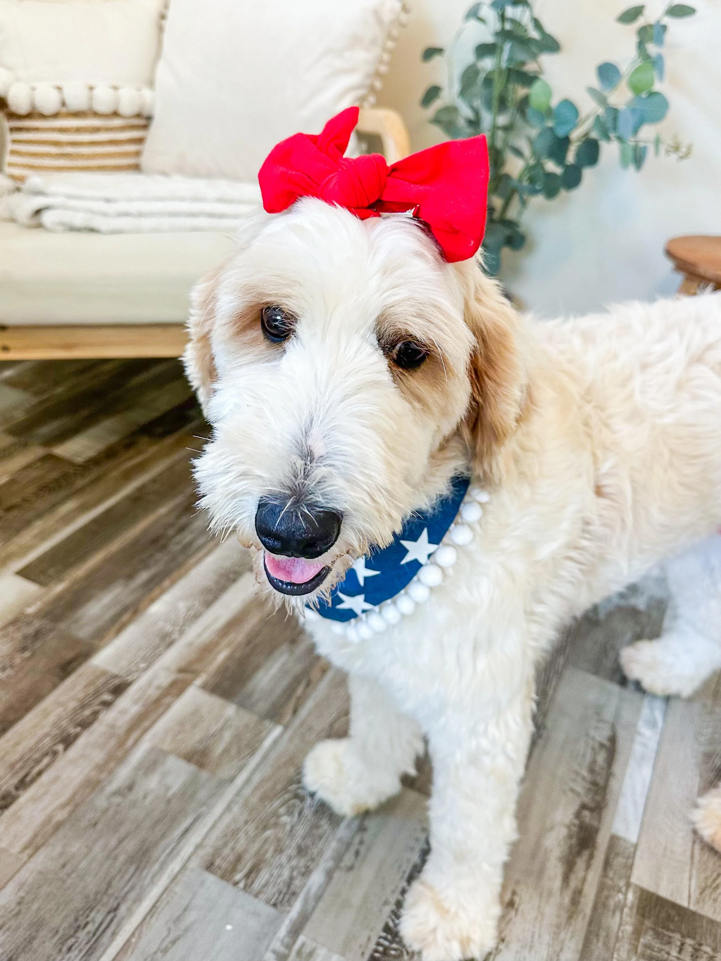 Bungee has a joyful, easygoing nature that also makes her a favorite to everyone she meets. She thrives on human connection, always eager to please and quick to offer affection. Bungee is the perfect-sized mini Goldendoodle — compact enough to snuggle on your lap, but sturdy enough for outdoor adventures.