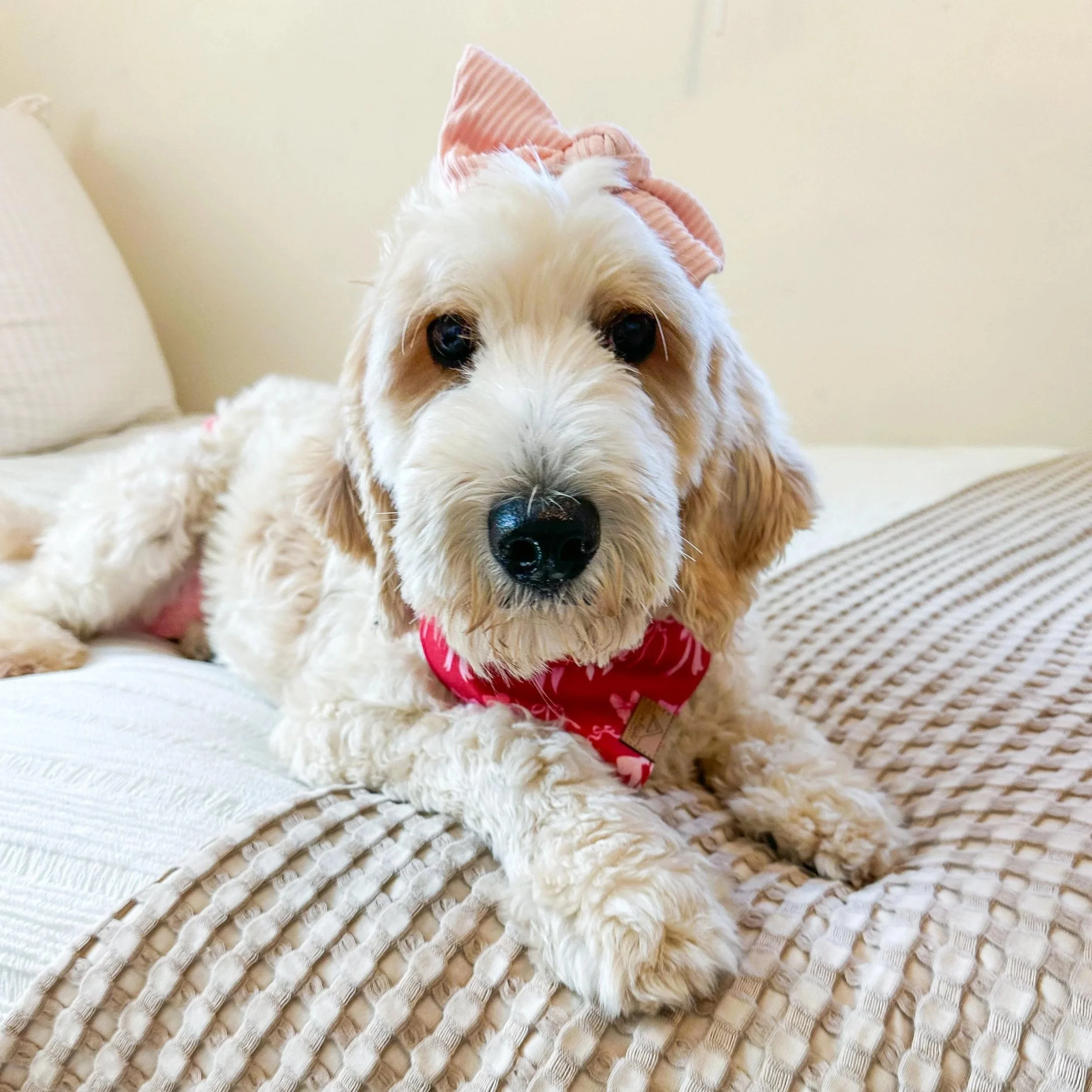 She’s the perfect blend of beauty and heart, with a soft, non-shedding cotton-style coat and the sweetest, most playful personality. Palmer is food motivated (to say the least!) and will happily perform her best tricks for a treat.